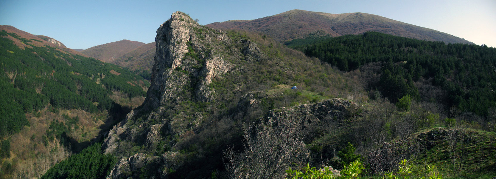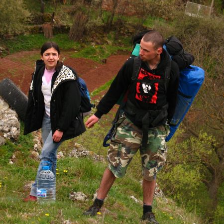 Оказа се в края на краищата, че само аз ще вода практиката. Организацията не беше лека, защото някои от курсистите можеха да дойдат чак привечер. След дълго размотаване по организацията на превозните средства тръгнахме към 11 ч. Аз с Ачо и Цвети. По леко беше да минем по пътя през Бабица и след това да се включим в пътя Брезник-Трън. С останалите Папи, Стефан и Мишо се срещнахме в Трън. Отпуснах им една разходка до Ждрелото а аз и Ачо се отправихме към местността Шиьли камик над с. Зелениград. Изнесохме багажа и установихме мястото за лагер. На 2 минути път от избраната за картиране пещера. Докато ги дочакаме се качихме да видим пещерите „Царева църква“ и „Разцепената“. И двете имаха нужда от редакция на картите, а по скалите в района зееха още множество отвори.