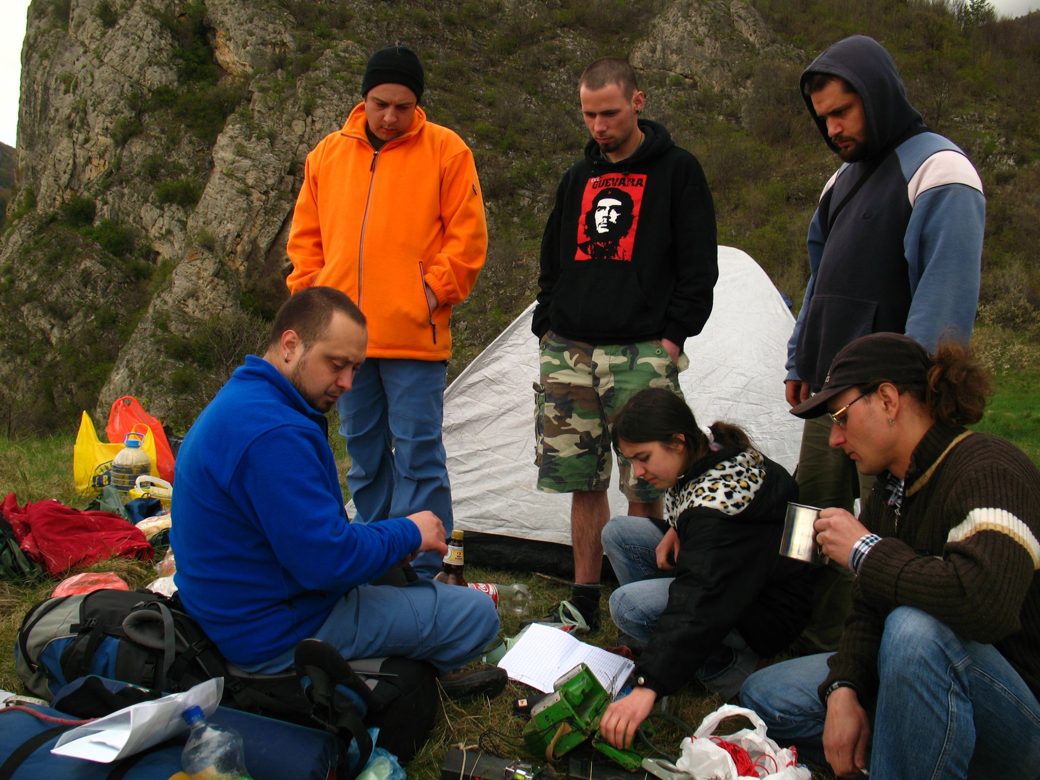 След като, пристигнаха останалите и опънахме палатките се отправихме към пещерата. На пръв поглед се оказа по сложна от колкото си я представих. Имах чувството, че ще видим зор. Това се оказа точно така в последствие. Докато картираме преддверието пристигнаха Джо, Калина и Ася. Нещо се бяхме недоразбрали и те без обхват ни бяха търсили повече от час безуспешно. Погледнаха и те дупката и след една финална картирана отсечка се прибрахме в лагера. Изкарахме хубава вечер пред лагерният огън.